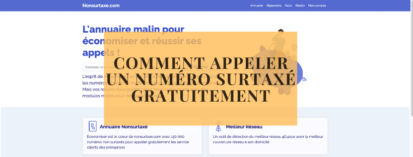 Derrière chaque numéro de téléphone surtaxé, il y a son équivalent non surtaxé ! Et oui la loi oblige les sociétés à fournir à leurs clients un numéro non surtaxé pour le service après-vente et les réclamations, en trouvant les numéros non surtaxés vous allez faire des économies sur votre forfait téléphonique car les numéros surtaxés sont très chers. Pour trouver ces numéros allez sur le site nonsurtaxe.com, un annuaire qui référence plus de 100 000 numéros de téléphone non surtaxés ! Cherchez le service voulu e-commerce, assurance, banque, fournisseur internet, transporteur de colis, compagnies aériennes … et le site vous affichent le numéro non surtaxé :
