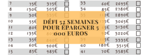 Vous le savez, sur mon blog, je prône les défis épargne comme étant un moyen efficace d’épargner. Avec les défis,