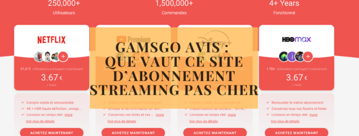 Les plateformes de streaming sont de plus en plus nombreuses, que ce soit pour le sport, la musique, les séries, les films, etc. Si on veut avoir plusieurs comptes de streaming, cela revient vite cher, mais c’était sans compter sur GamsGo, qui casse les prix des abonnements. Avec Gamsgo, vous pouvez réduire par 2 ou par 3 le prix de votre abonnement.