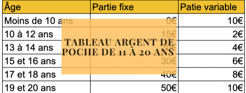 Tableau argent de poche de 11 à 20 ans